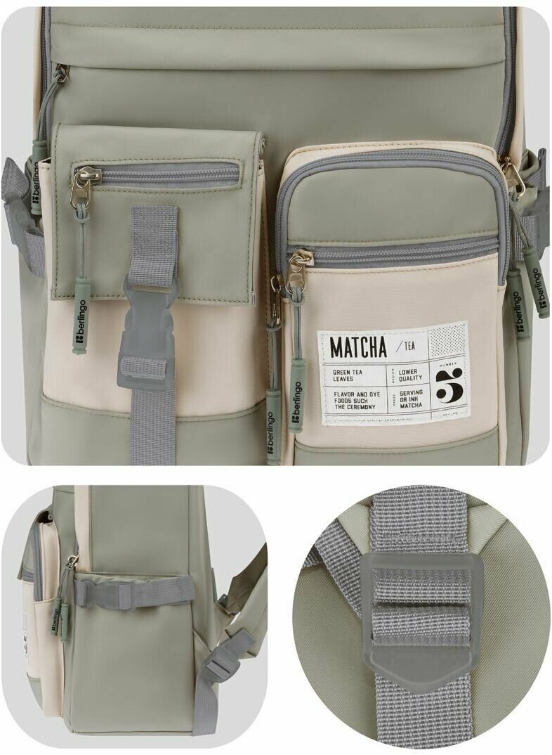 10 цен на Рюкзак Berlingo Tasty "Green matcha", 40*28*15см, 1 отделение, 7 карманов, уплотненная спинка, 353176