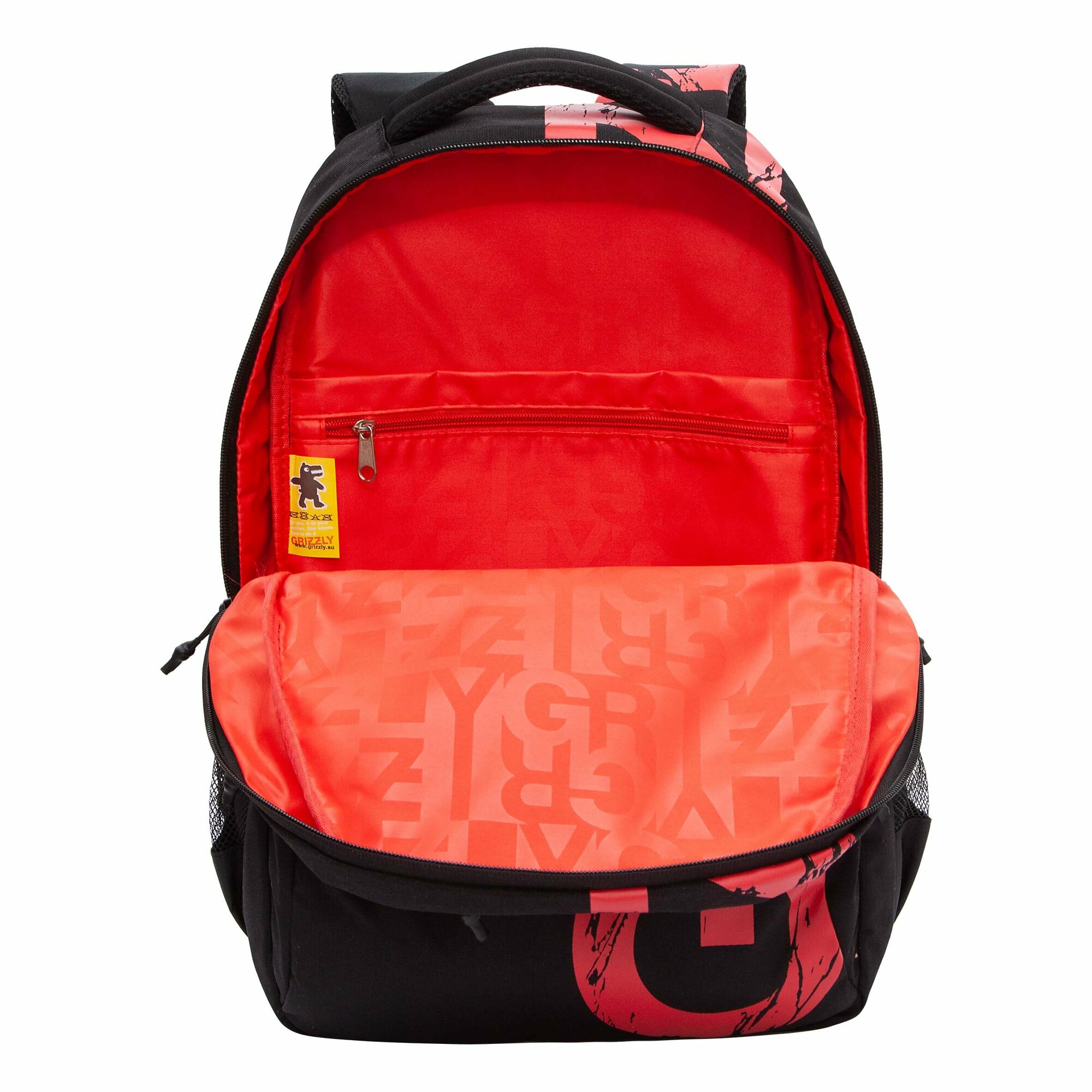 Школьный рюкзак с эргономичной спинкой GRIZZLY RU-436-2/1 черный - красный, 2 отделения, 832грамм, 47x32x17см
