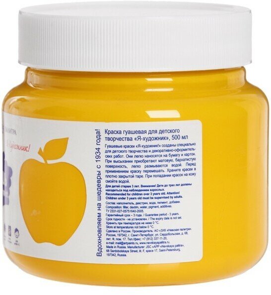 Гуашь в банке 500 мл, ЗХК Я - , жeлтая, 23024211 информация: