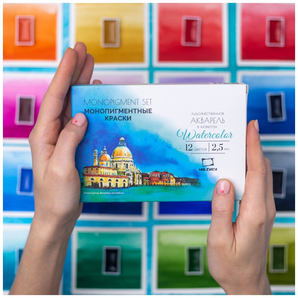 Отзывы на Акварель Малевичъ Veroneze, акварельные краски в кюветах 2,5 мл, 12 цветов