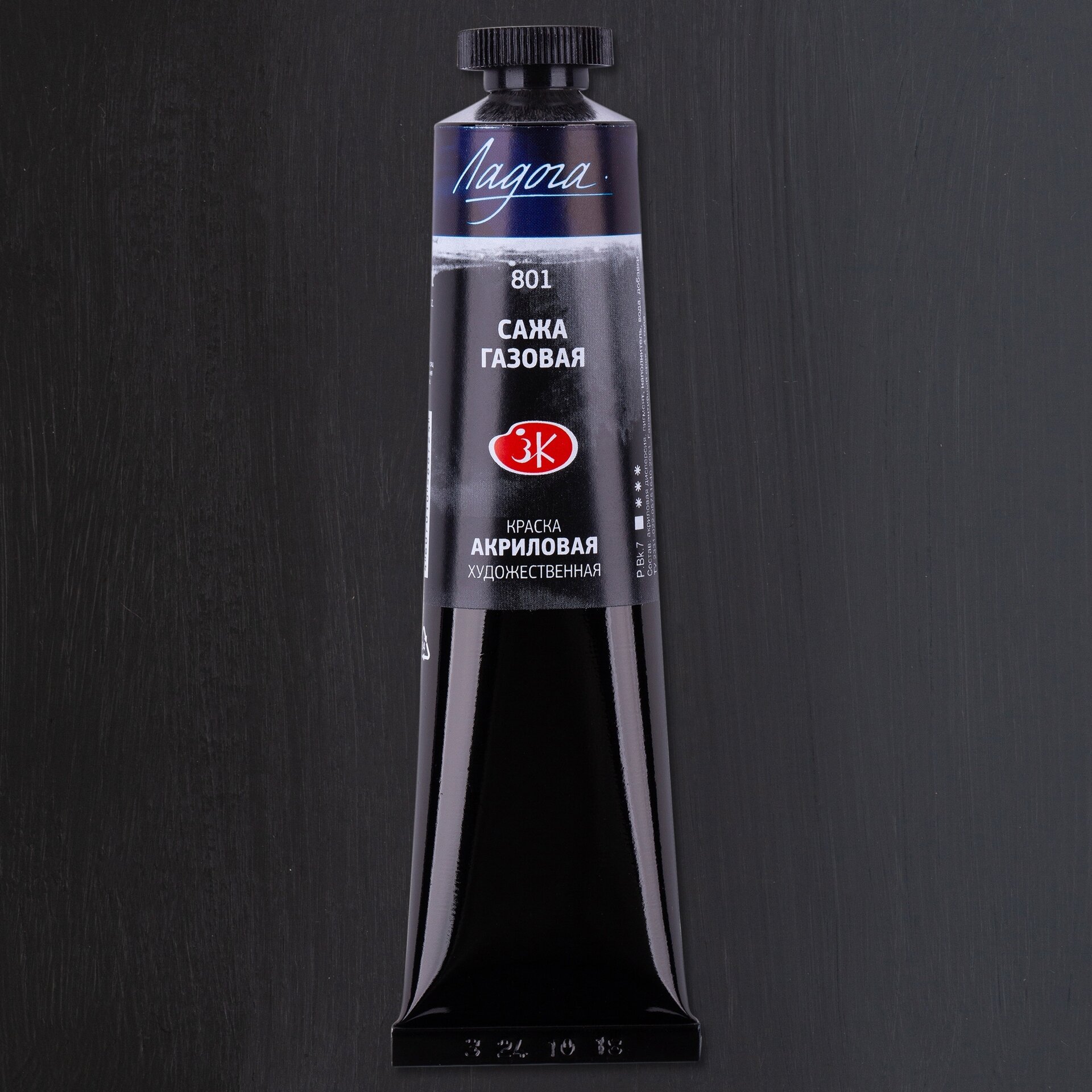 Краска акриловая художественная в тубе 46 мл, ЗХК "Ладога", сажа газовая, 2204801