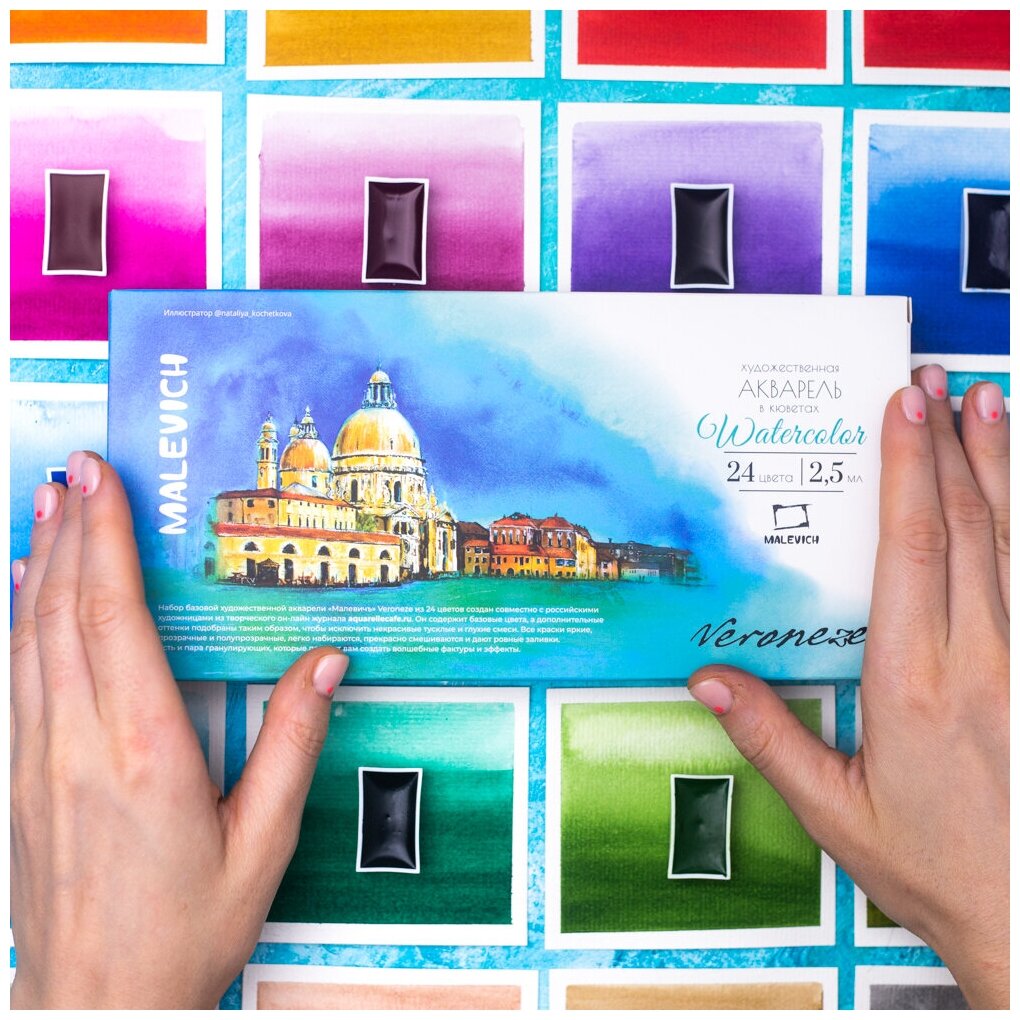 10 цен на Набор акварели Veroneze кюветы 2,5 мл, акварель в кюветах, 24 цвета