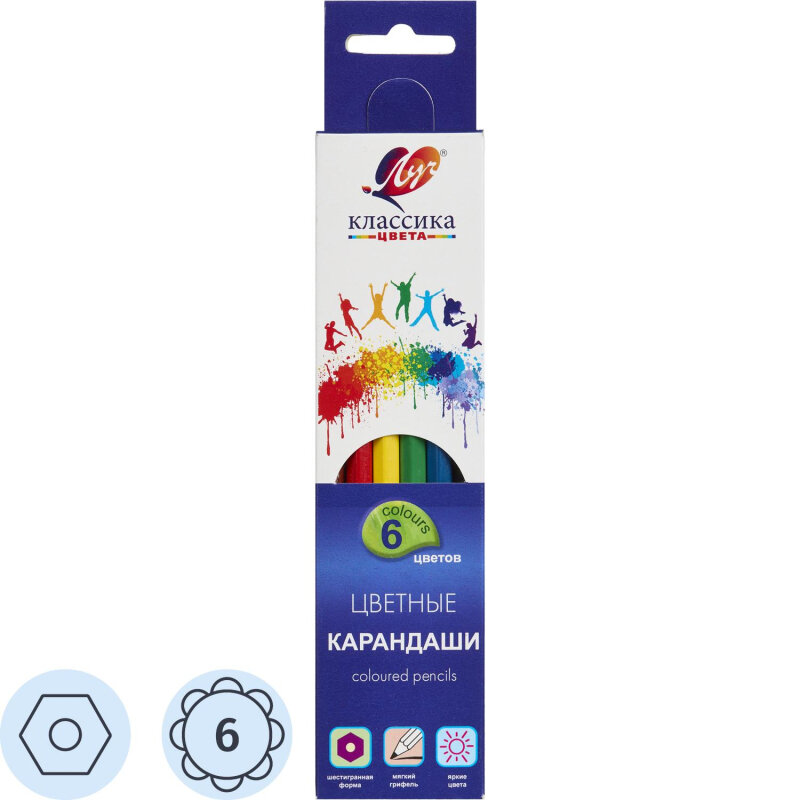 Карандаши цветные 6 цв, 6-гран, ЛУЧ Классика, 29С 1709-08