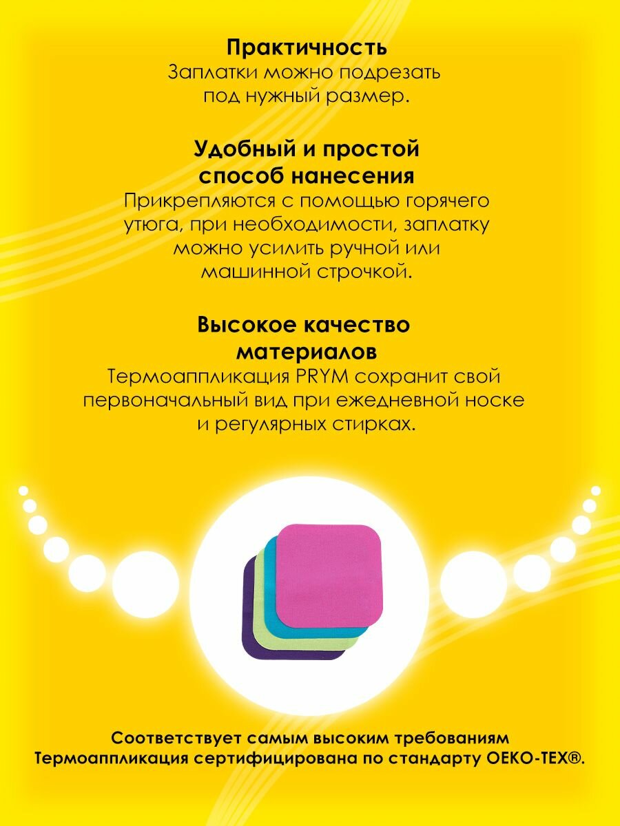 Заплатки из саржи термоклеевые Prym, 929221, 13*13 см (зеленый, бирюзовый, розовый, фиолетовый), 4 шт информация: