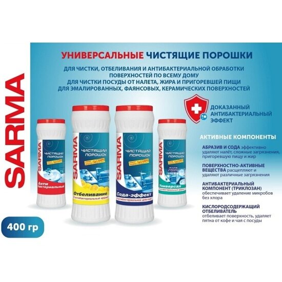 10 цен на Чистящий порошок Sarma Лимон, с антибактериальным эффектом, 400 г