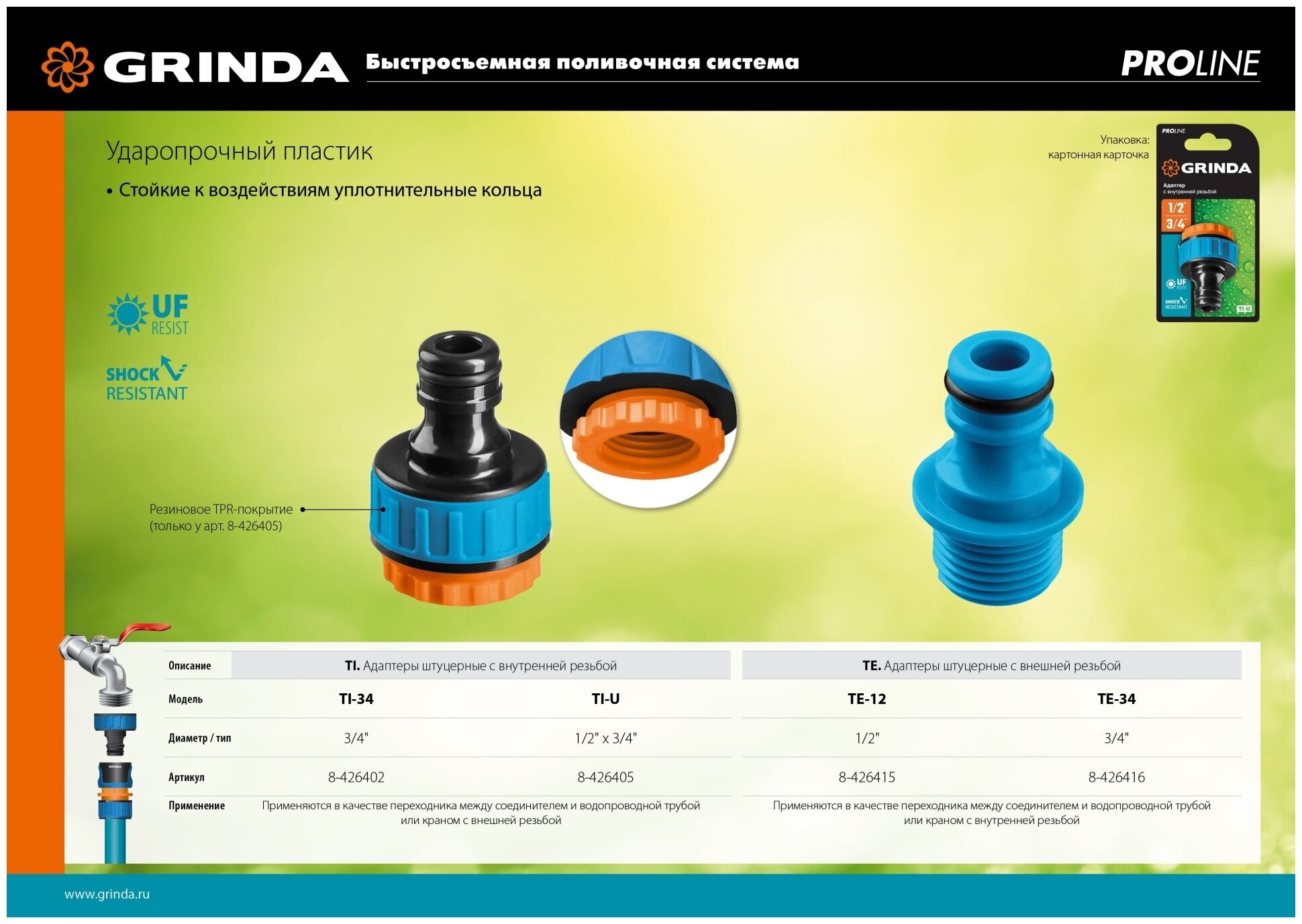 10 цен на Штуцерный адаптер GRINDA PROLine TE-34 3/4", с внешней резьбой 8-426416