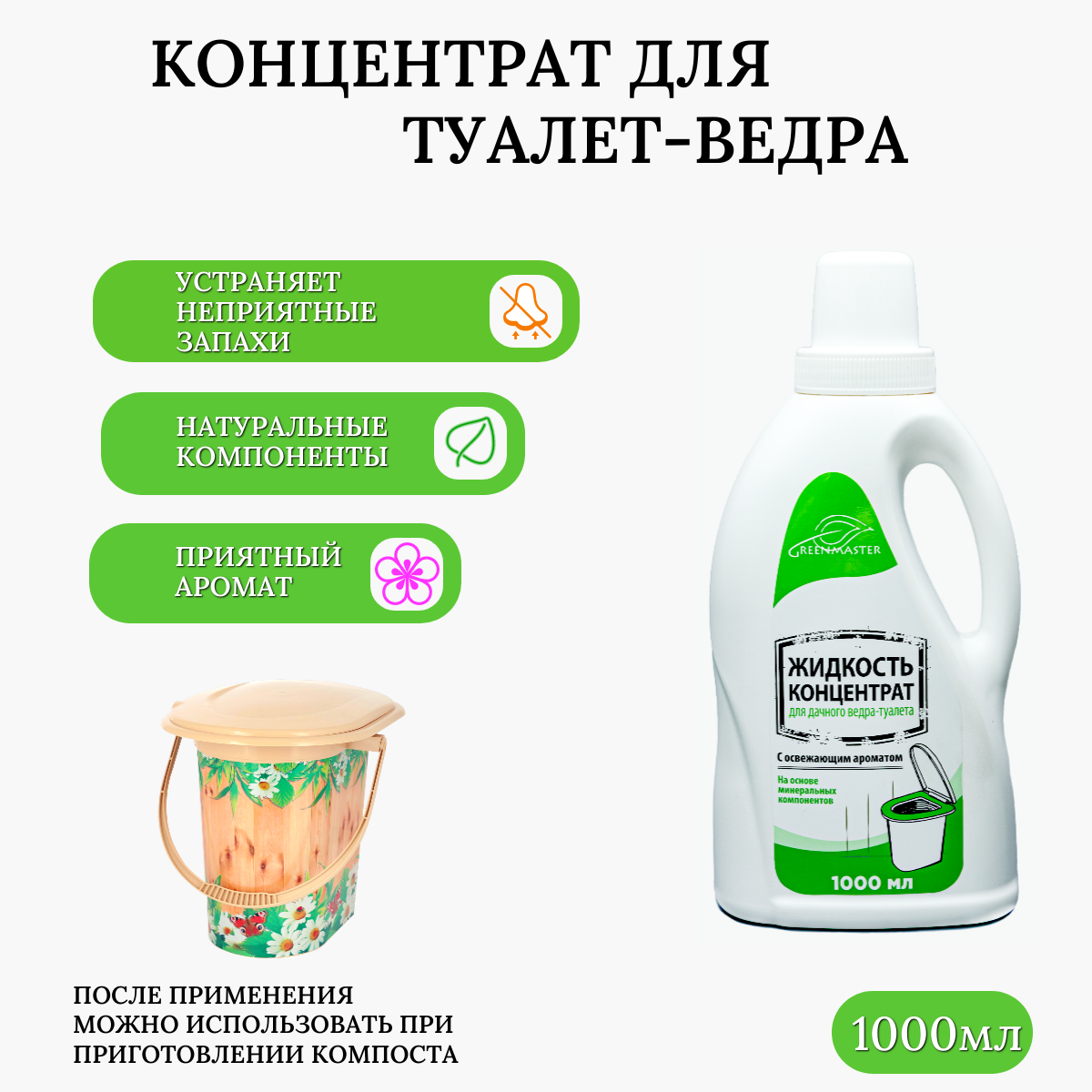 Жидкость-концентрат GREENMASTER, для ведра-туалета, устраняет запахи, 1 л информация: