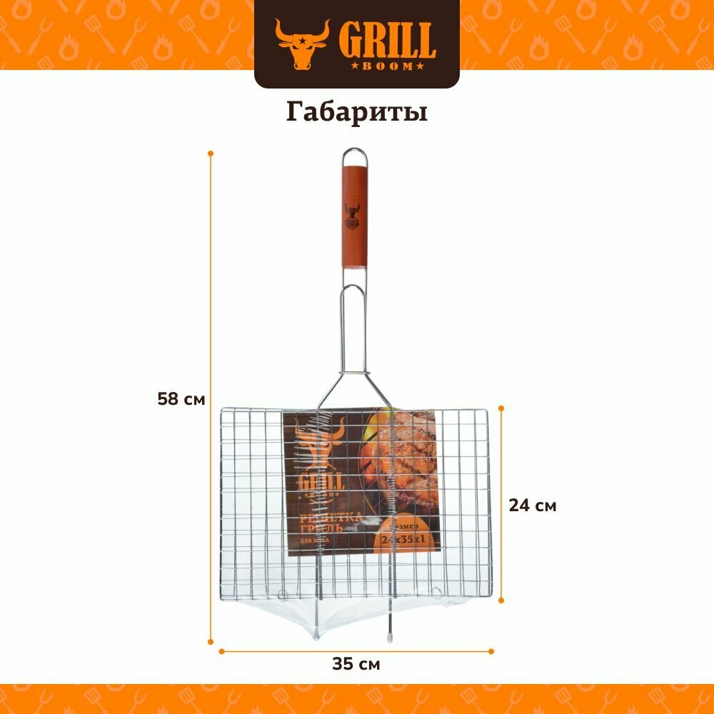 Решётка-гриль 27x32x6 см GRILLBOOM/ решетка для гриля, шашлыка, барбекю/ сетка на мангал 746 ₽