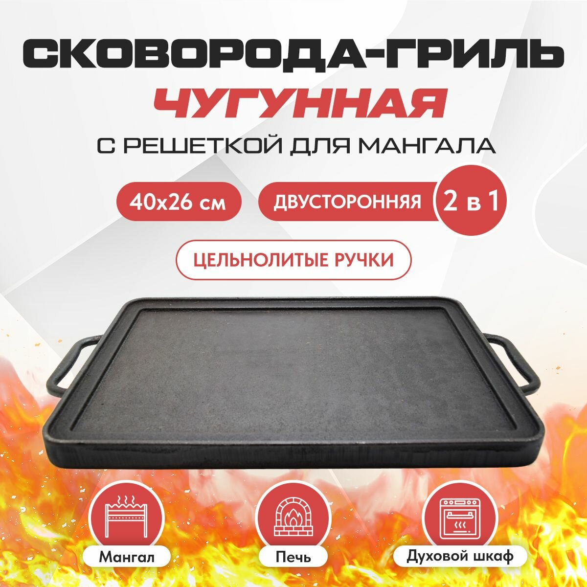 Сковорода-гриль с решеткой, для мангала, чугунная, 400х260 мм информация: