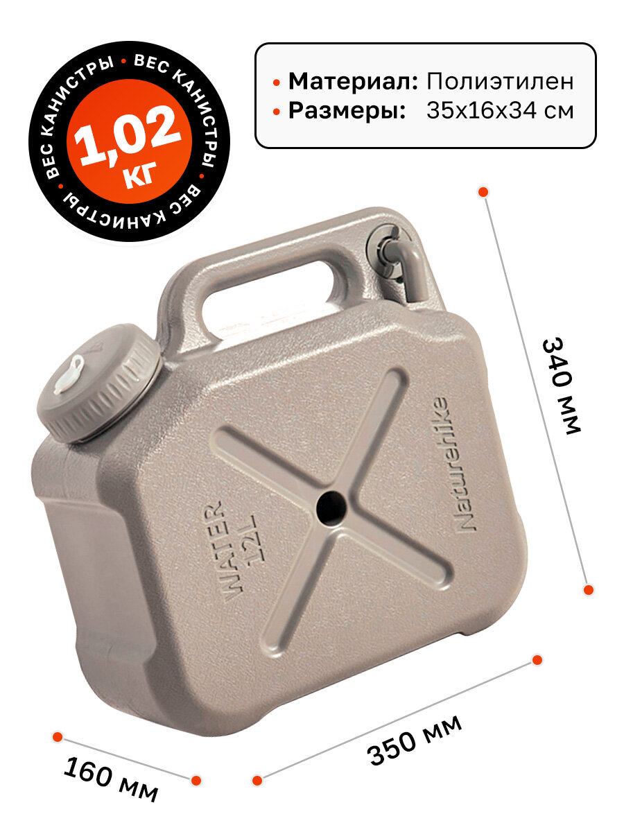 10 цен на Канистра Naturehike, для воды, с краном, 12л, одноемкостная, пластиковая, бежевая