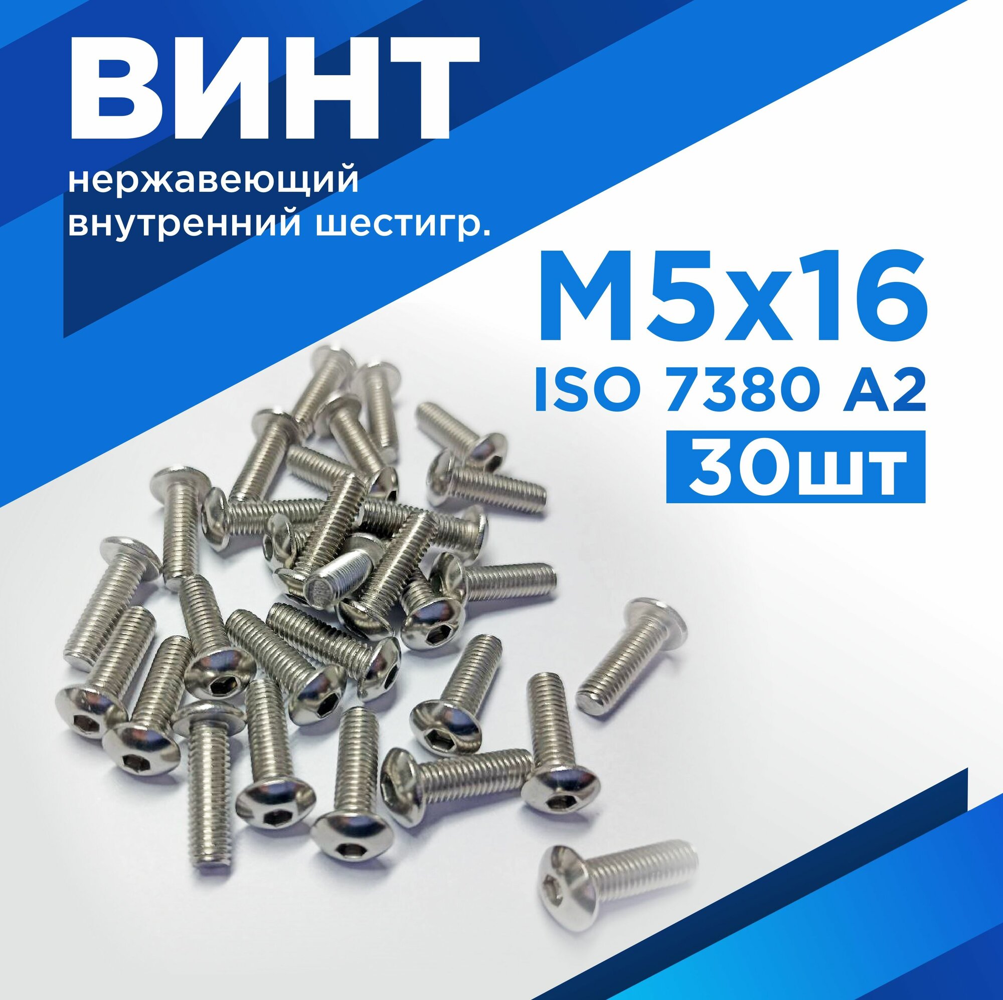 10 цен на Винт М5х16 мм, ISO 7380, нержавеющая сталь А2, внутр/шестигр, комплект 30шт
