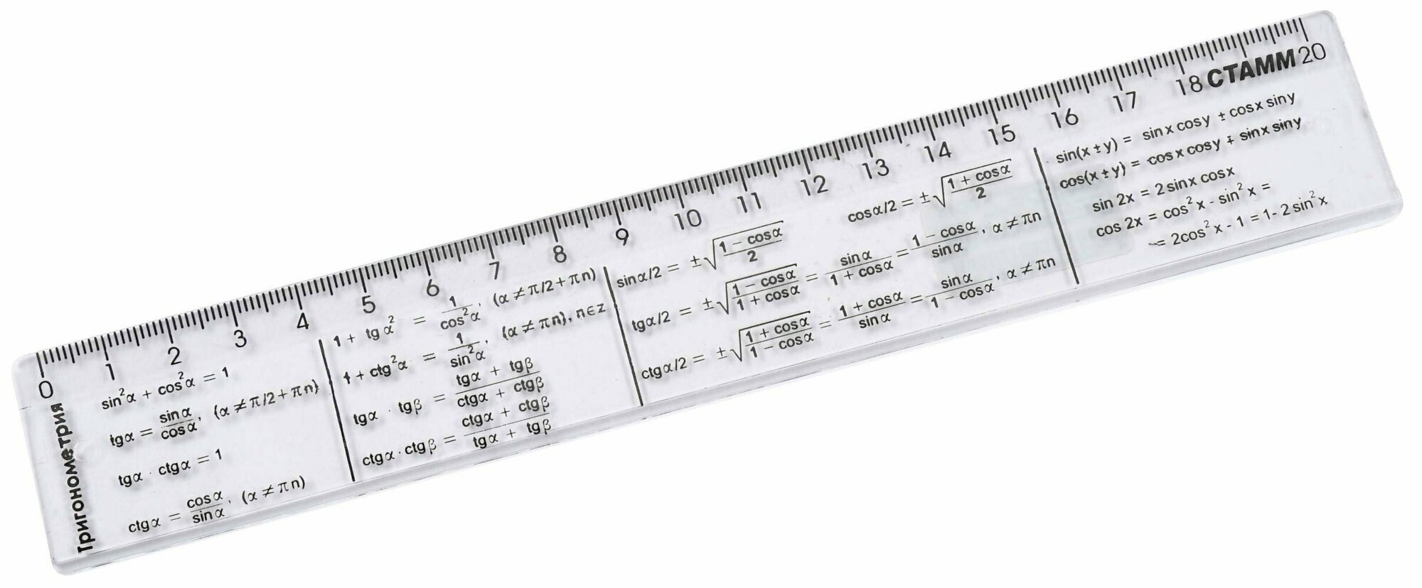 Стамм Линейка справочная 20 см "Тригонометрия", бесцветная