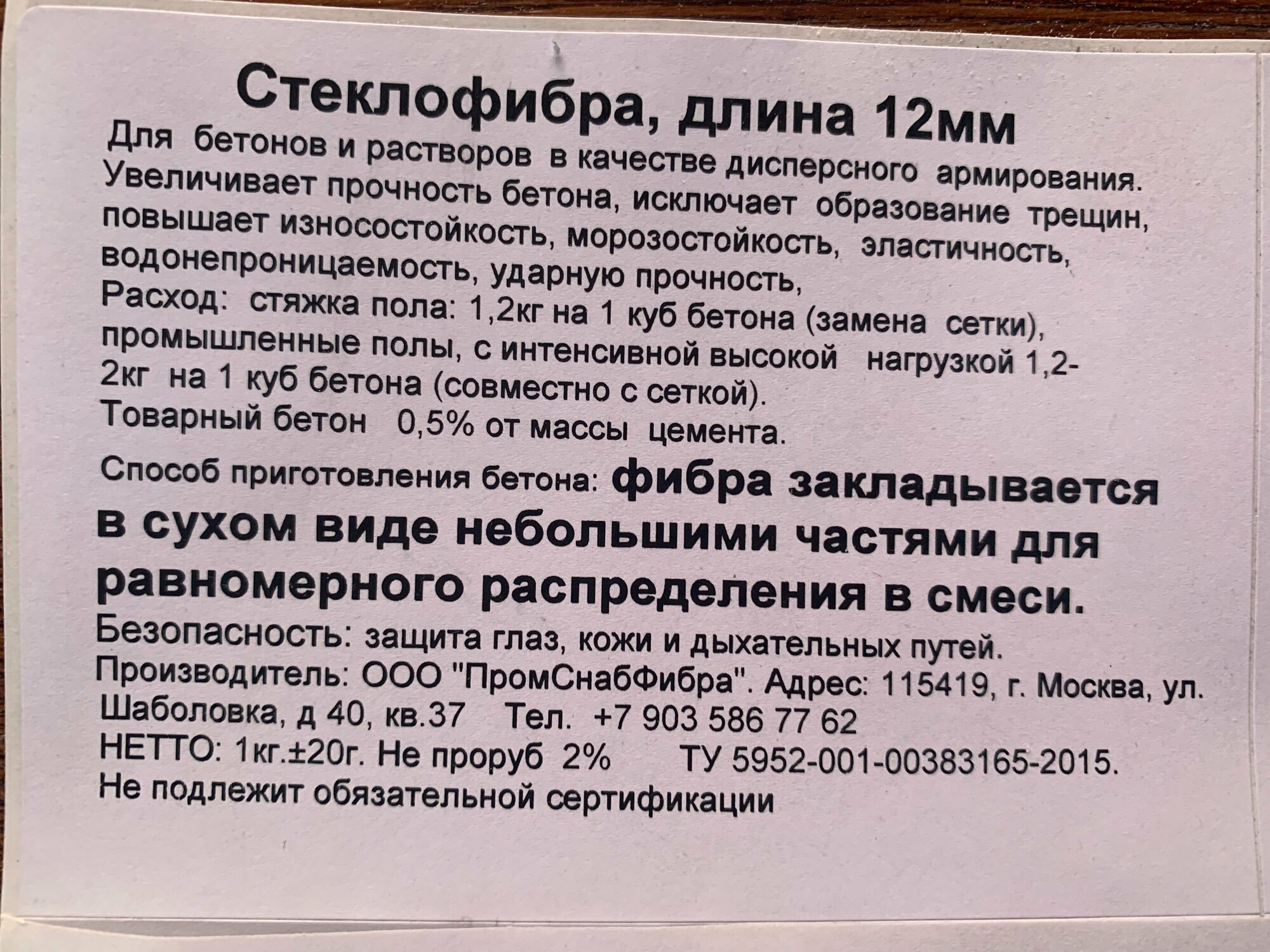 | Производитель | ООО "Промснабфибра" |