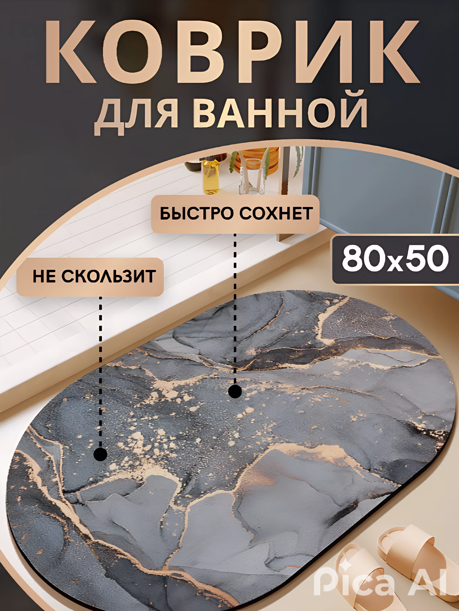 Отзывы на Коврик для ванной и туалета противоскользящий, быстросохнущий 50*80см, Серый мрамор