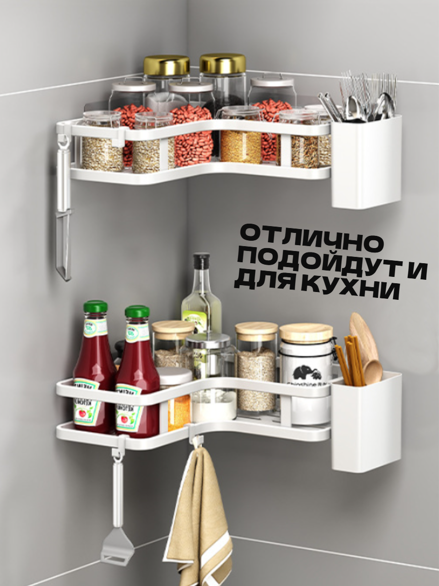 Полка для ванной и кухни угловая без сверления на липучках белая 2 шт информация: