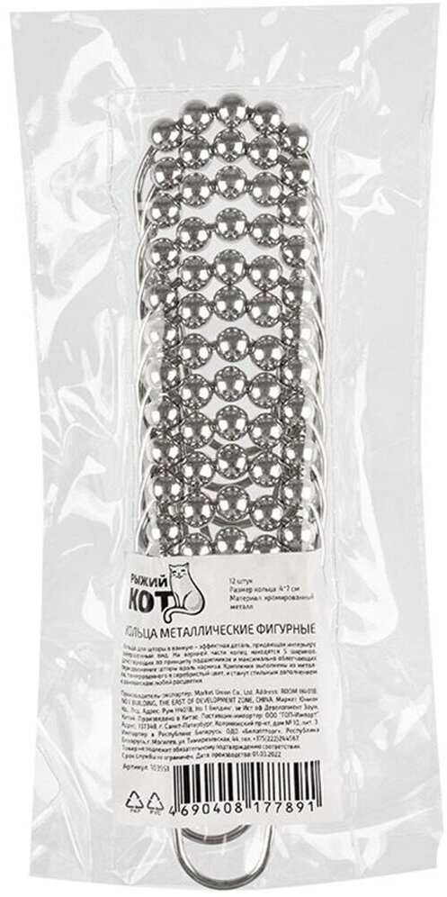 Кольца для штор в ванную Рыжий кот, хром, 12 шт информация: