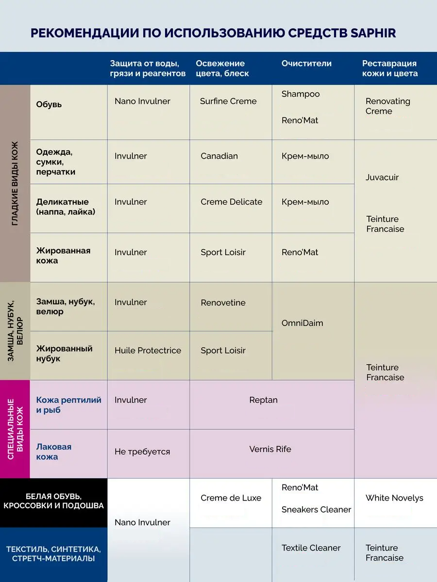 | Дополнительная информация | велюр, гладкая кожа, замша, нубук, очиститель, пена очиститель, текстиль |
