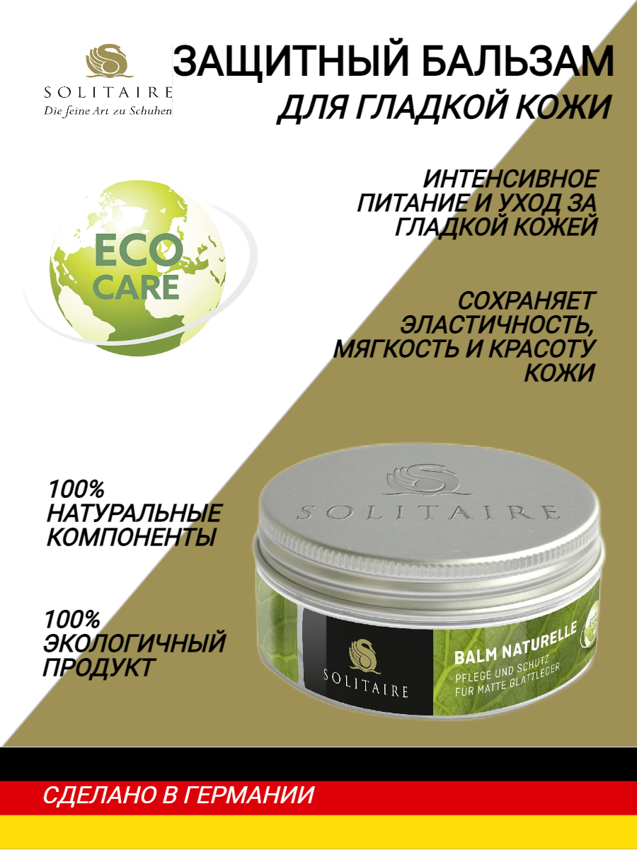 10 цен на Защитный бальзам для обуви SOLITAIRE Balm Naturelle 75ml жир для натуральной гладкой кожи, бесцветный