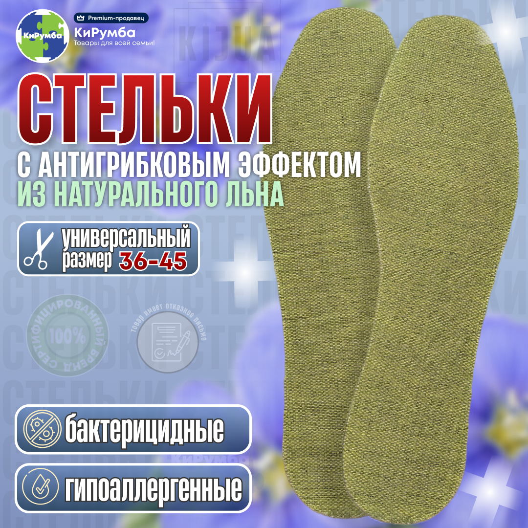 Стельки для обуви, из натурального льна, бактерицидные, с антигрибковым действием, универсальный размер, 36-45 информация: