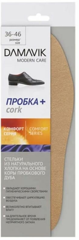 Damavik Стельки для обуви Пробка Plus, с натуральным хлопком информация: