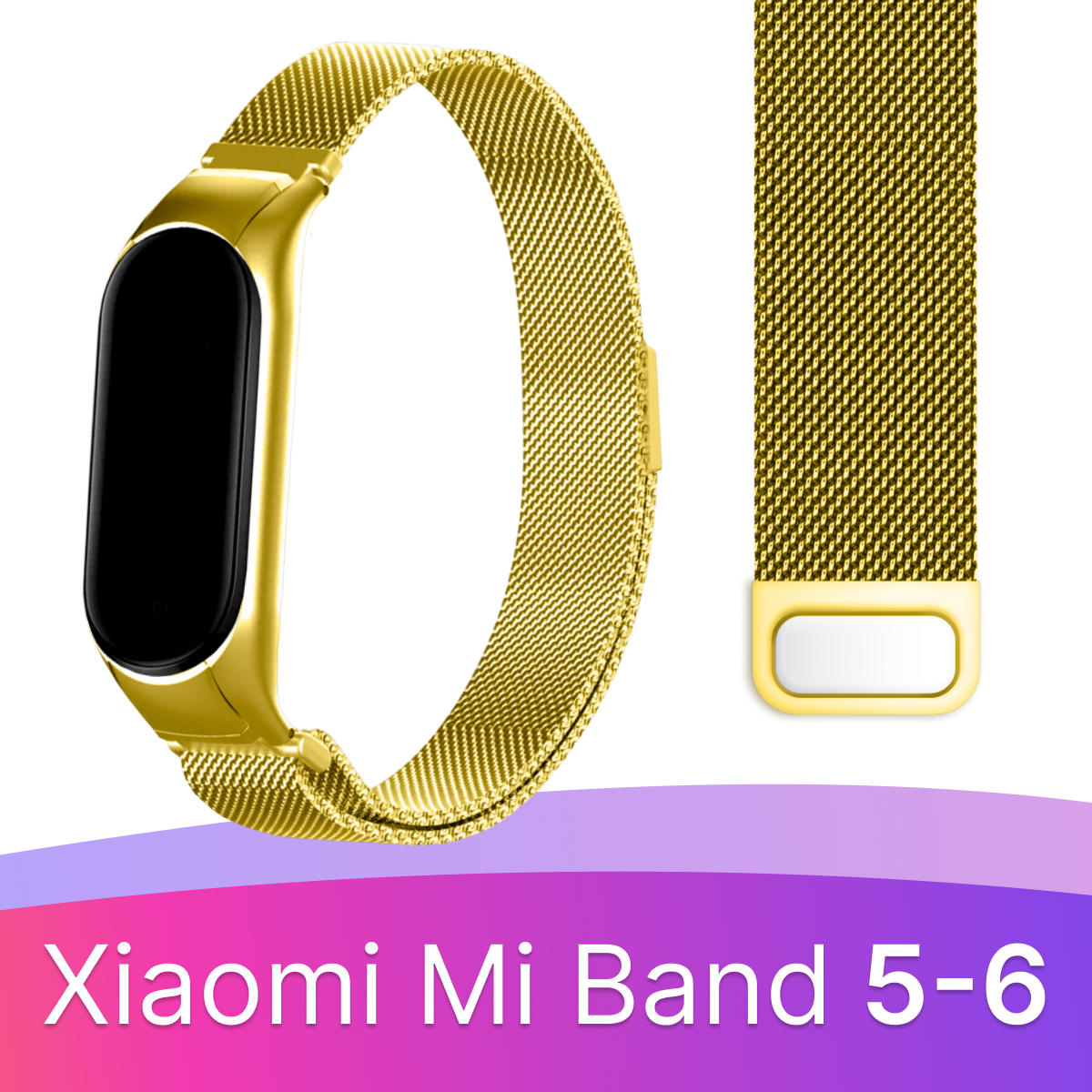 Ремешок миланская петля для смарт часов Xiaomi Mi Band 5, 6 / Металлический браслет (milanese loop) для фитнес трекера Сяоми Ми Бэнд 5, 6 / Лимонное золото 987 ₽