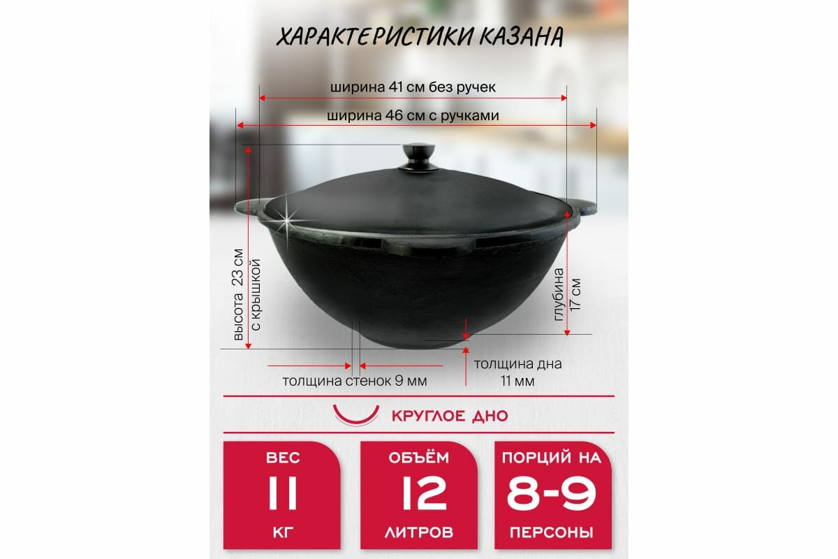 Davr Metall Казан чугунный узбекский davrmetall 12 л (круглое дно) с крышкой сковородкой казан12(круг)+крыш(сков)12л информация: