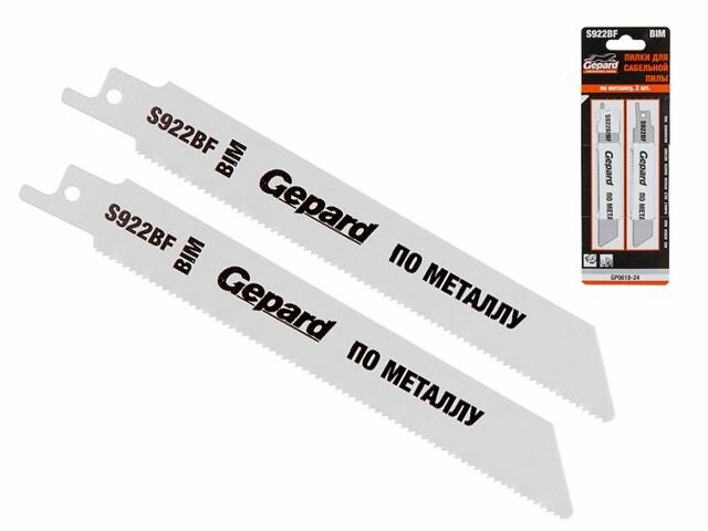 Пилка сабельная по металлу S922BF (2 шт.) GEPARD (полотно для сабельной пилы, пропил прямой, тонкий, для листового металла) (GP0618-24)