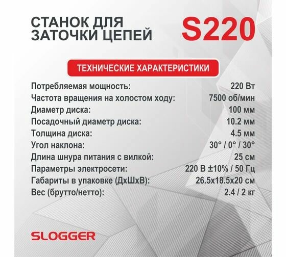 SLOGGER Станок электрический для заточки цепей S220 информация: