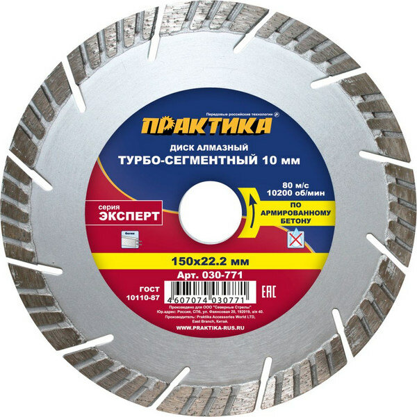 10 цен на Диск алмазный турбосегментный "Эксперт-бетон" 150 х 22 мм, сегмент 10мм (1 шт.) коробка