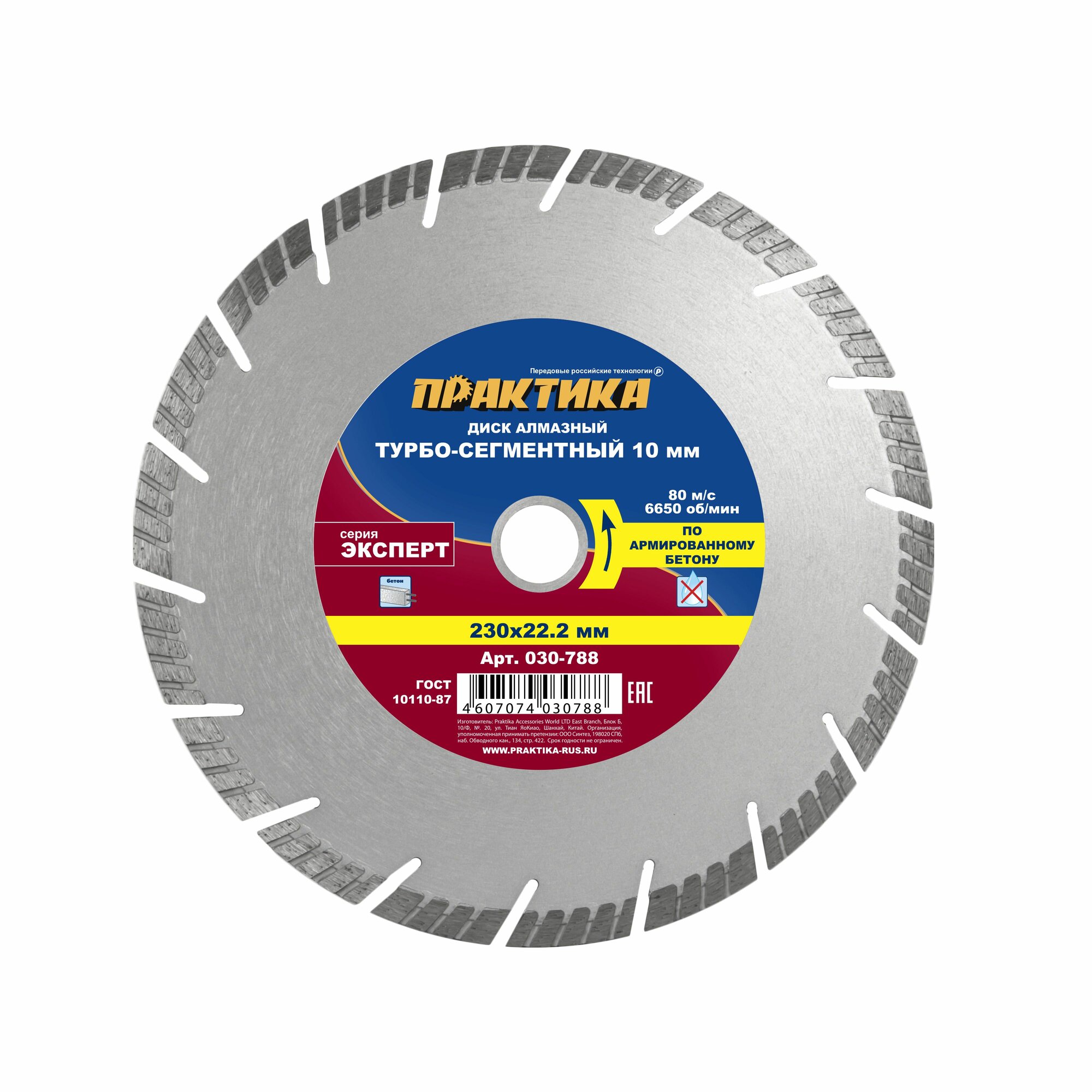 10 цен на Диск алмазный турбосегментный ПРАКТИКА "Эксперт-бетон" 230 х 22 мм, сегмент 10 мм