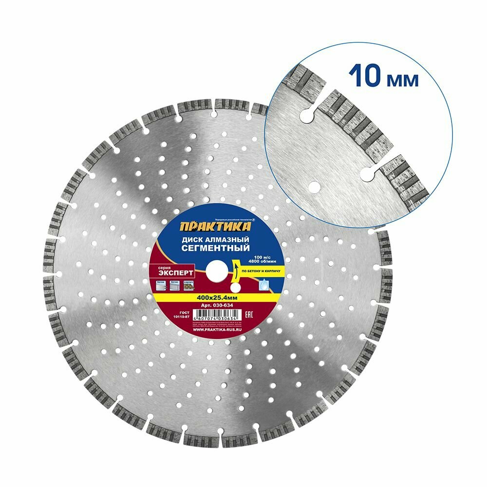 10 цен на Диск алмазный турбосегментный ПРАКТИКА "Эксперт-Бетон" 400 х 25,4 мм, сегмент 10 мм