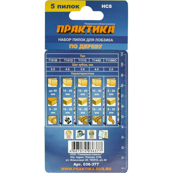 10 цен на Набор пилок для лобзика по дереву 5 типов, 5шт. картонная упаковка