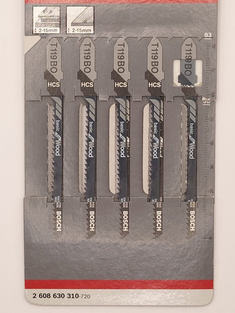 Отзывы на Пилки для лобзиков по дереву T119BO HCS (Длина общая - 83мм, рабочая - 56мм) 5 штук Bosch 2608630310 Оригинал