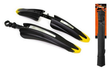 10 цен на Крылья TRIX 24-26", к-кт перед./задн, крепеж: перед. за бустер вилки, задн. за подседельный штырь; ширина 70мм, пластик, желто-черн.