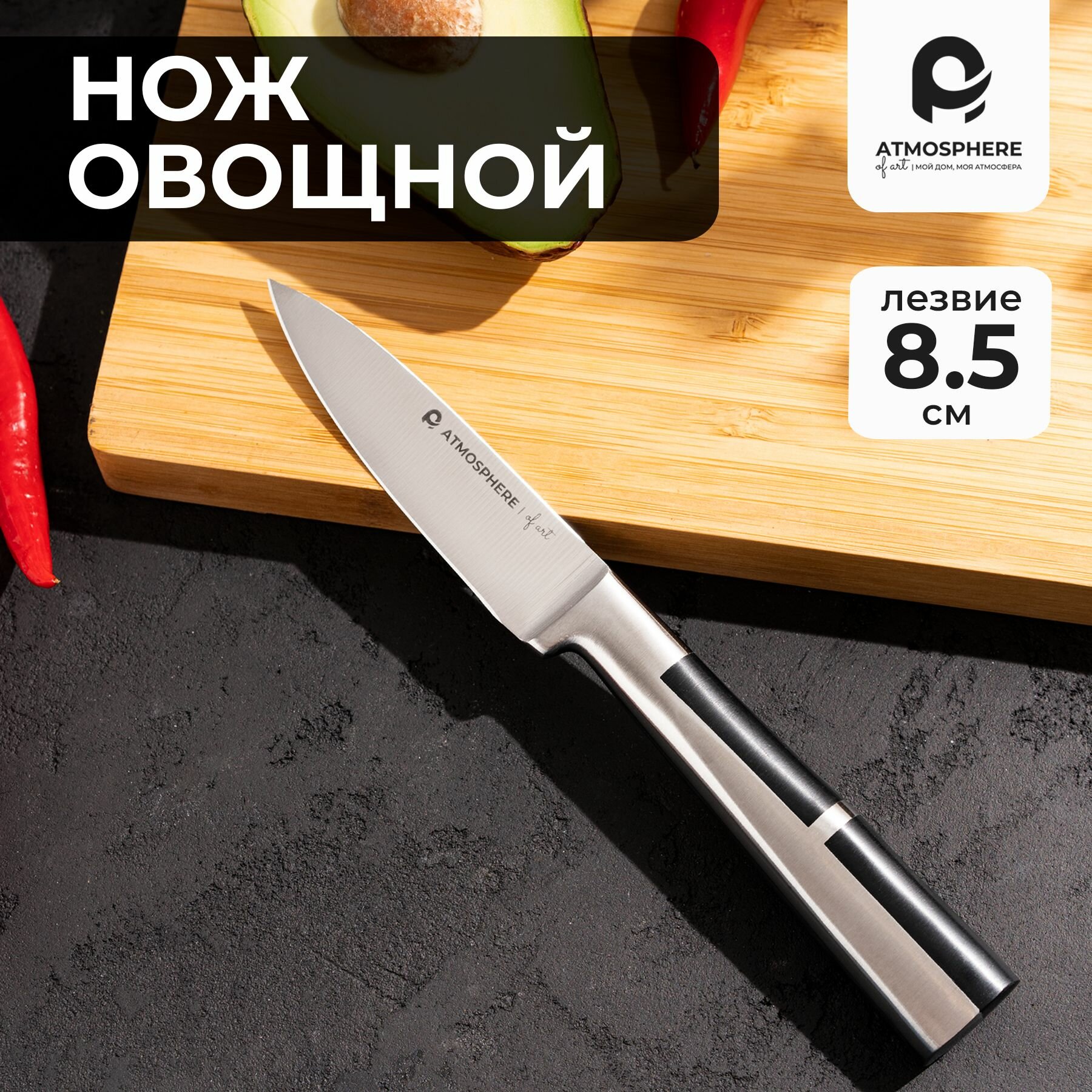 Отзывы на Нож кухонный ATMOSPHERE Esthetic, нержавеющая сталь, длина лезвия 8,5см