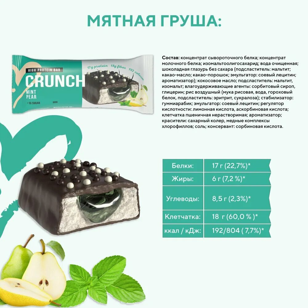 Протеиновый батончик BOOTYBAR Crunch, Мятная груша, 16 шт по 60 г информация: