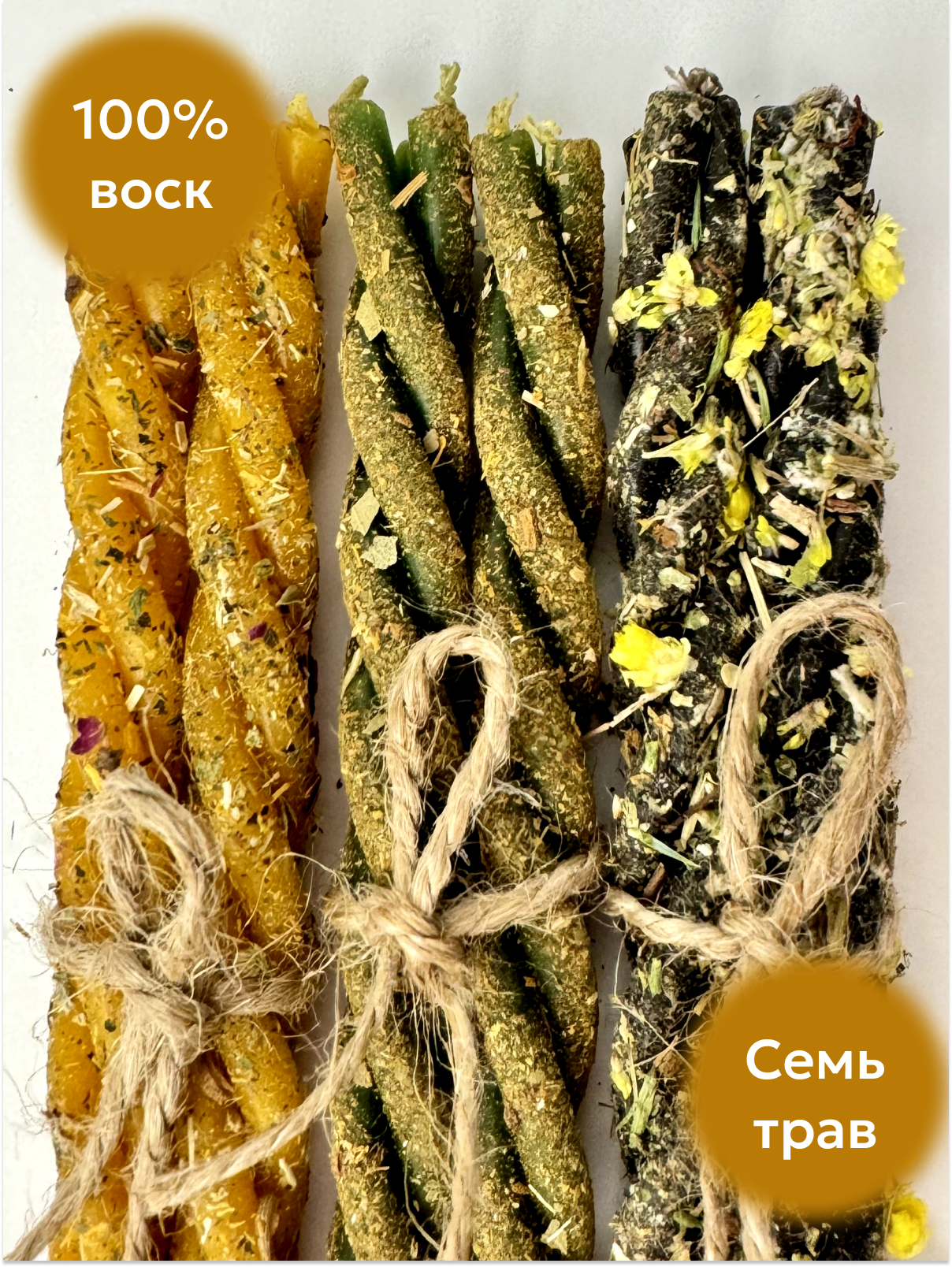 Магические скрутки свечи с травами для ритуалов на очищение, любовь и деньги набор 6 шт. 350 ₽