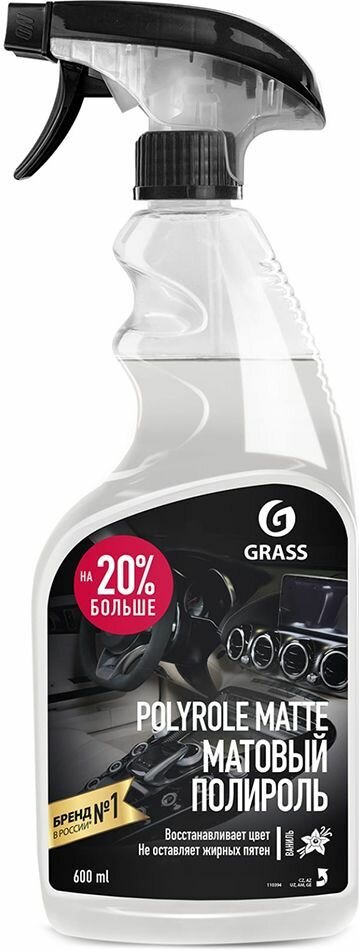 Отзывы на Грасс Polyrole Matte полироль-очиститель пластика (0,6л) / GRASS Polyrole Matte полироль-очиститель пластика матовый ваниль (600мл)