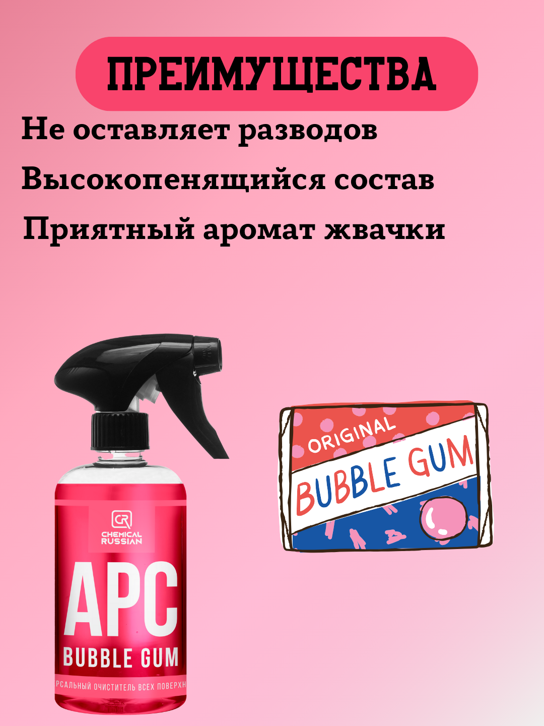 Отзывы на Очиститель салона автомобиля - APC Bubble Gum, 500 мл, Chemical Russian, очиститель пластика для автомобиля