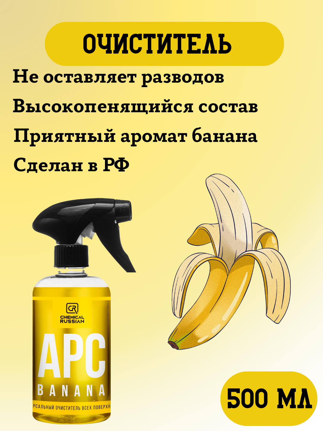 Очиститель салона автомобиля - APC Banana, 500 мл, Chemical Russian, очиститель пластика для автомобиля информация: