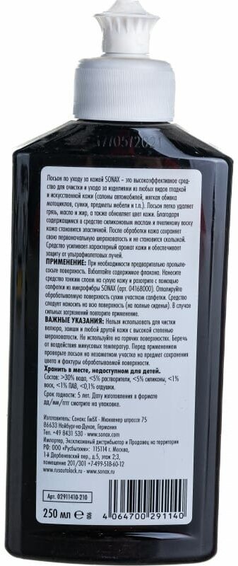 SONAX Лосьон по уходу за кожей салона автомобиля 291141, 0.25 л информация: