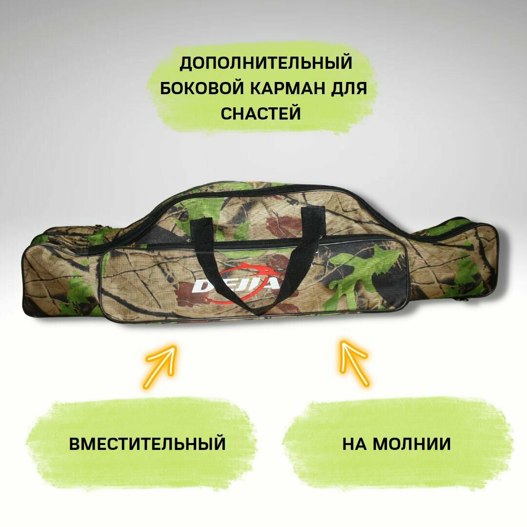 Чехол для удочек на два отделения для переноски снастей спиннинга с катушкой / сумка для рыбалки 100см , камуфляжный