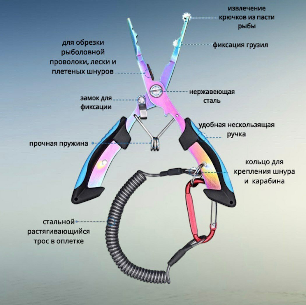 Отзывы на Плоскогубцы рыболовные с карабином и чехлом для хранения аксессуара