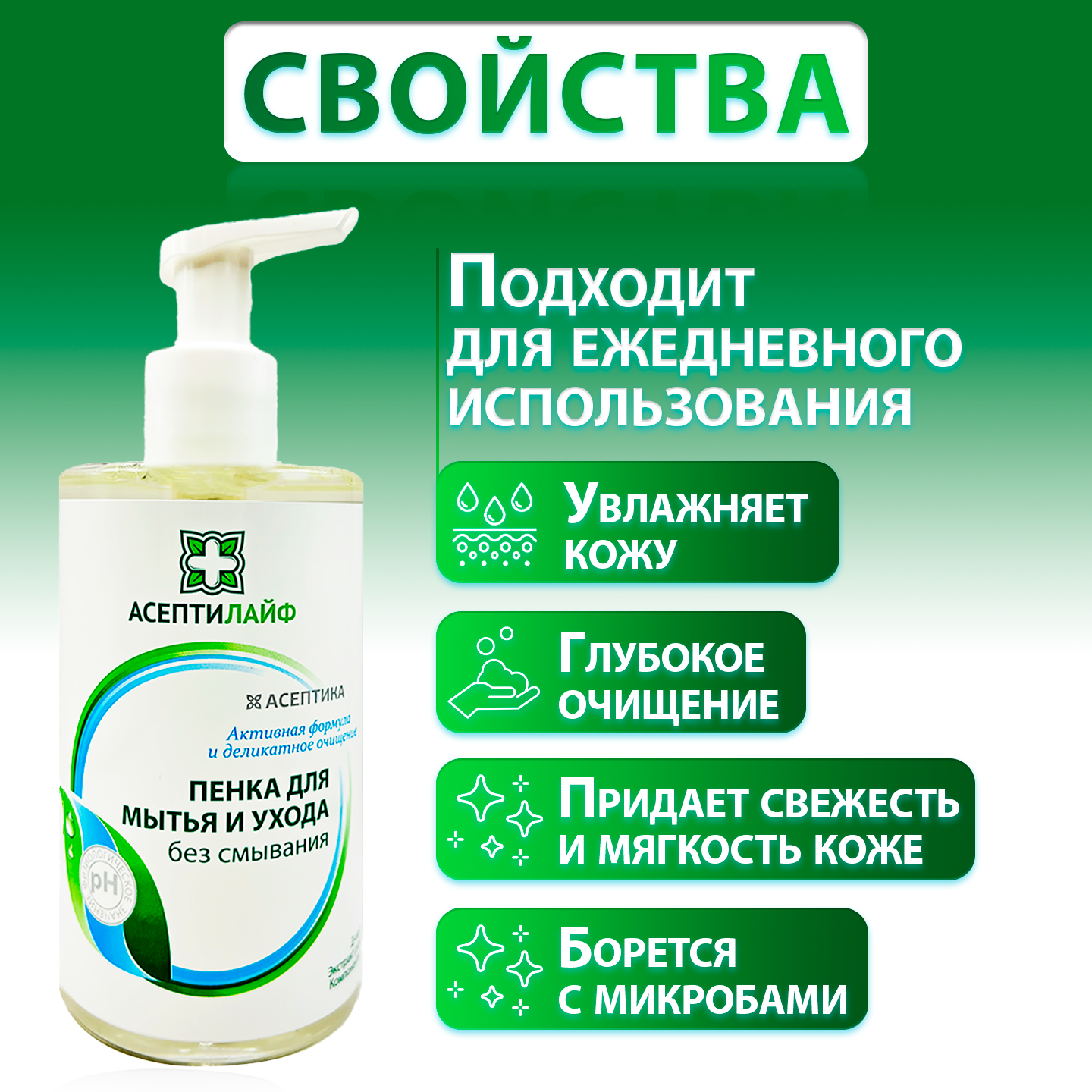 Пенка для мытья и ухода лежачих больных без смывания Асептилайф, уход и интимная гигиена тела без воды, 450 мл информация: