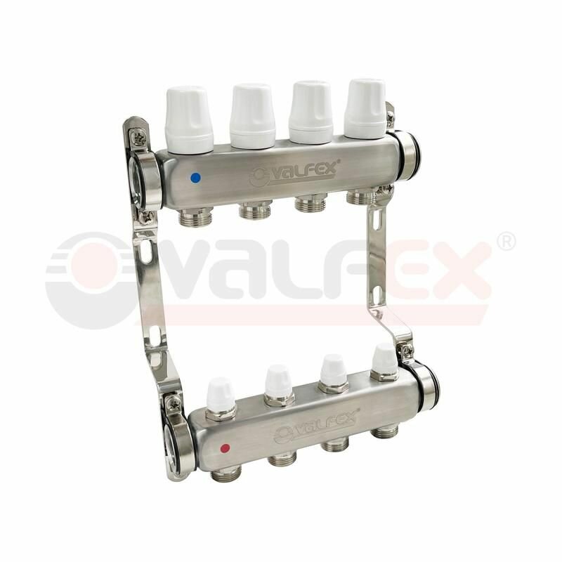 Коллектор Valfex VF.587.0604 с регулирующими клапанами, нержавейка, 1", 4 выхода.