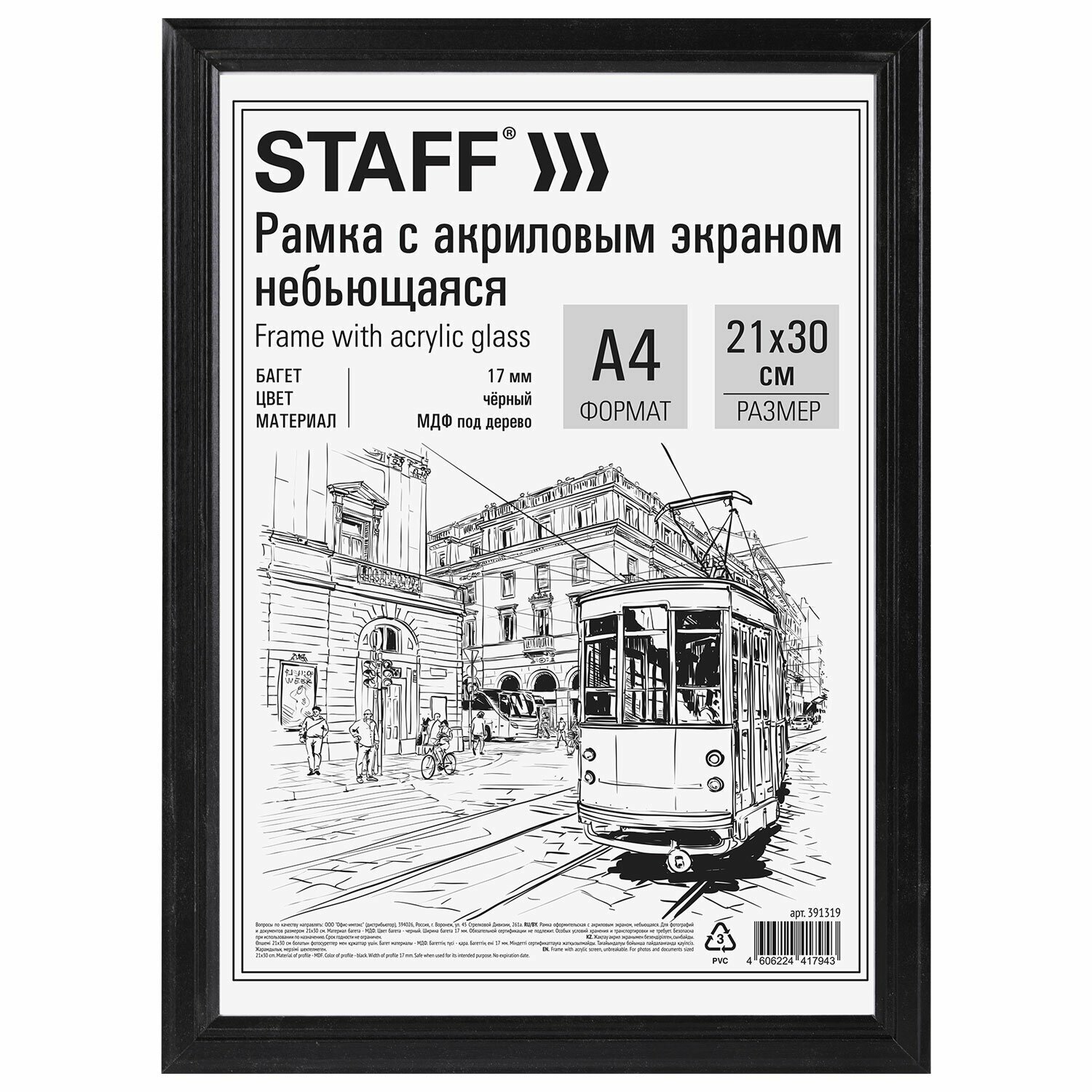 10 цен на Рамка 21х30 см небьющаяся, багет 17 мм МДФ под дерево, STAFF "Carven", черная, 391319