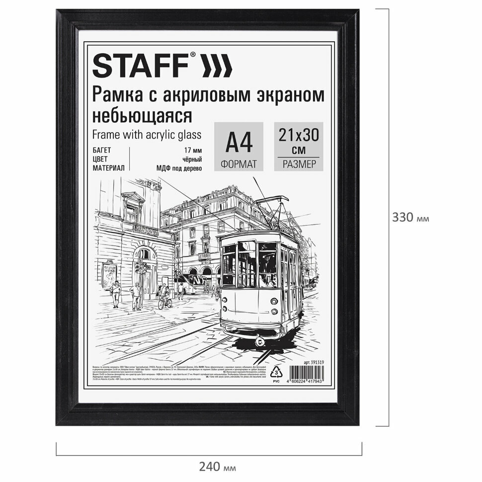 Рамка 21х30 см небьющаяся, багет 17 мм МДФ под дерево, STAFF "Carven", черная, 391319 472 ₽
