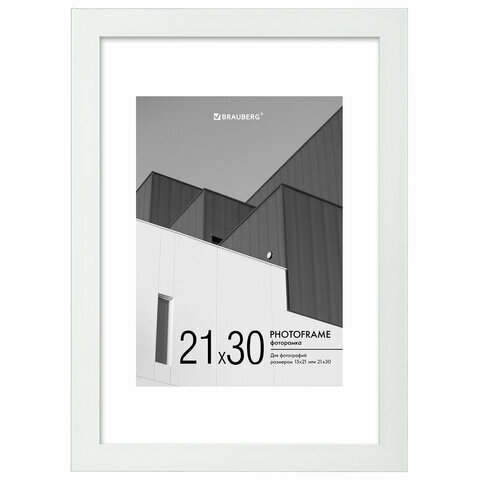 Рамка (фоторамка) для фото, фотографий, картин, грамот на стену А3 30х40, с паспарту А4 21х30, небьющаяся, багет, пластик, Brauberg, белая, 391278 1 020 ₽