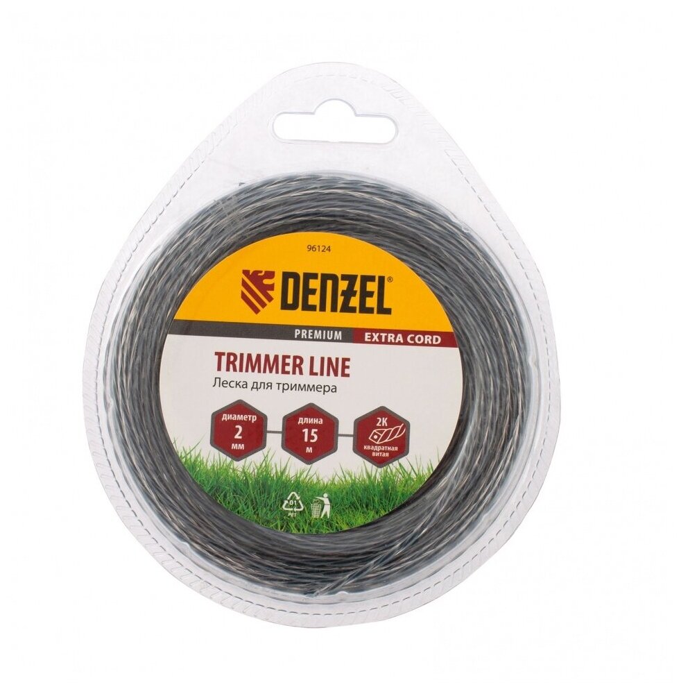 Леска для триммера двухкомпонентная Denzel квадрат 2 0мм 15 м EXTRA CORD 96124
