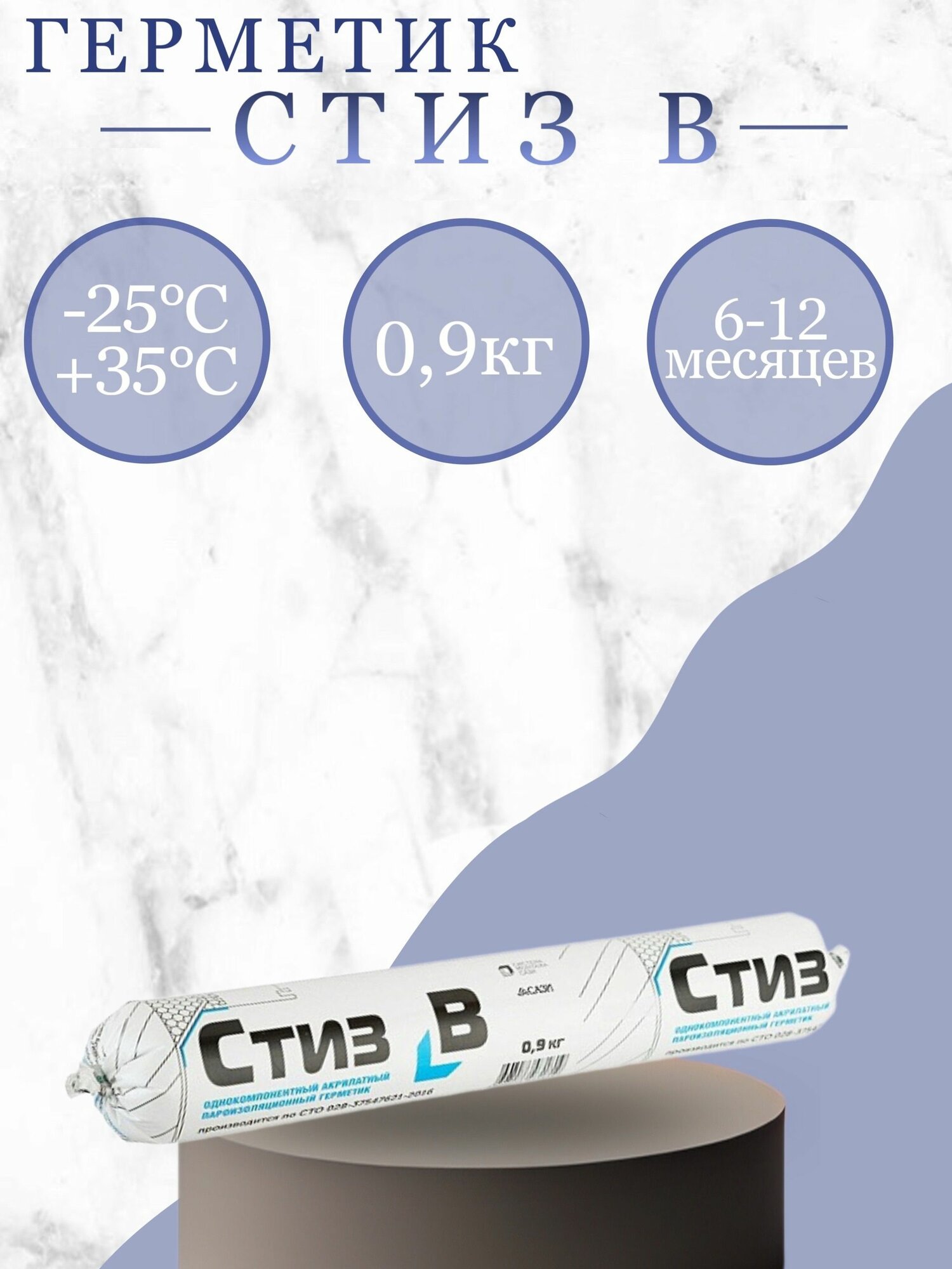 Герметик Стиз B 0,9 кг(600мл) - Белый, для внутреннего слоя монтажного шва информация: